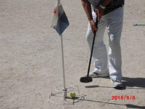 殺人的猛暑でも、GGは欠かさないのが、8.9いる。みんな元気である。写真上は2打で入った瞬間である。この快感のために休まずに来るようである。金曜日は仲間内のコンペである。