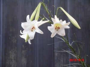 今年も我が家の鉄砲百合が咲いてくれた。花のない時期に咲くので、心和ませてくれる。それにしてもこの暑さはいつまで続くのであろうか。