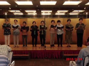 民謡の研修会は、発表会を兼ねての練習で、先生の三味線に、お囃子の二人も頑張って一同なごやかに終わる。あとは、カラオケタイムで、次々と舞台に上がり、時間オーバーも、幹事の采配で希望者全員歌うことができた。皆さん民謡をやっておられるせいか、持ち前の美声に、玄人はだしの人が、何人も居られるのには感心のしっぱなし。