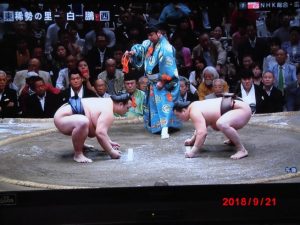 大相撲は好きで、家内と二人でテレビ観戦を欠かさないが、今日の、この一番で、稀勢の里が負けたので、この場所はもう終わった。こうして立ち会い前の写真を見ても、白鵬の方が姿勢は低く隙がないように見える。白鵬の強さは、万人が認めるが、なぜか私は好きではない。