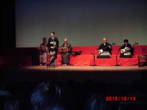 午後は老人大学で民謡を習っている、先生の会の、三味線と民謡の発表会があったので、聴きに行く。老大の発表会と違って、男は紋付袴で女の方は、大きな柄の着物の盛装で、歌われるので、聴きごたえがあった。ただ民謡の世界も、若い人がいないのが、悩みのつぁねの様である。