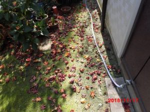 いつもは家内に庭の落ち葉の掃除を命令されるが、今日は、紅葉の葉がきれい落ちていたので、2.3日置いておくことになった。それにしても水道のホースは無粋と言わざるを得ない。