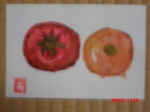 今日は家内が、絵手紙の日で、その時間ごろに電話をしたら、素直に言ってくれた。家から歩いて500歩ほどの所にあるので、一人で行って一人で帰ってきたようだ。私が新年会から帰ってら、家内と入れ違いに私が帰った。絵は幼稚園くらいのものであるが、みんなの手を借りて、描いてくるのが私にとっては嬉しいのである。いつまで描けるか、アルバムに整理してやっている。