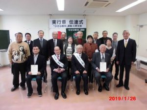 毎年1月には、小さな親切運動の、実行章の伝達式がある。今年も3人の該当者に実行章が手渡された。この会も、高齢化で頭でっかちになった感はあるが、頑張って続けている。活動は念年に4回ほどの、草取と、年1回の、赤い羽根募金の街頭立ちである。たったこれだけであるが、もう50年近く続いている。