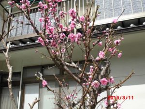 近所の桃が早々と咲いたが、我が家のしだれ桃は、当分咲きそうにない。この桃は南向きだが、我が家のは北向き。地価の差がこんなところにも出て、貧乏はしたくないものだと思う。