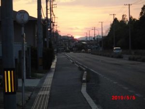 昨日はウオーキングを休んだが、今日は普通通りに歩いた。今年の連休の前半は、曇りがちであったが、雨は降らなかった。後半はピカピカで暑かった。夕焼けがきれいなかったので明日もきっと良い天気になるであろう。
