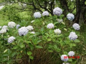 家内の留守を狙って、タンスなどの、断捨離を進めて片づける。一服して外に出てみたら、梅雨入りしたのか、雨が降り続いていたので、あじさいを見ると、まだ少しいびつだが元気の咲いていたのでパチリ。