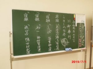 今日は奉行の7月句会。参加者32名。うち出席は18名。当分欠席されていた、昭恵さんが出席されたと思ったら、入院で常連が2人欠席。