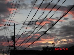 今日は駅前のごはん屋で、外食。帰りに川土手で少し散歩をしたら、遠く尾道の橋まできれいに見えたのでパチリ。帰って私だけが散歩に出たら夕焼けがきれいだったのでパチリ。万歩計は8.466歩