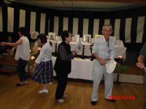 台風10号が接近して、大変な風が吹いている中、今年も、6人の新仏供養盆踊り大会が、お寺さんの読経でで始まり、焼香を済ませ踊りは始まった。