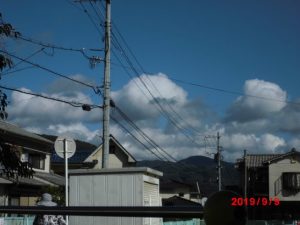 雲はまだ、秋には程遠い入道雲が、時折、雷鳴を、響かせながら、湧き上がっている。奥の方は夕立かもしれない。