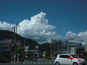 雲はまだ、秋には程遠い入道雲が、時折、雷鳴を、響かせながら、湧き上がっている。奥の方は夕立かもしれない。