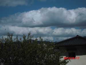 今朝の朝顔も、機嫌よく咲いてくれた。夕立の来そうな雲が、空を覆っていた。朝晩は随分涼しくなったが、日中ははまだ33℃で、外は目のくらみそうな天気である。
