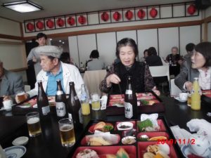 家内もいつもとは、違う刺激の中で、食事も美味しそうに食べてくれた。しばらくすると、お父さん、そろそろハーモニカでも吹いたらと、誘い水をさしてくれたので、、童謡から懐メロ演歌まで、30曲くらい、出まかせに吹いてみなさんに歌ってもらった。家内も知った歌はハーモニカに合わせてよく歌ってくれた。平生の日でも時には、慰みに家内の知っている歌を吹いてやると、鼻歌交じりによく歌ってくれるので、認知症の進行を遅らせる効果があるのと思っている。