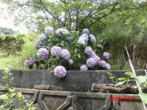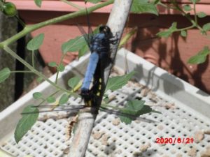 アジサイは雨のお陰で、元気に、大きな花をつけてくれた。快晴のもとで、トンボが交尾をしていた。おおらかなものである。