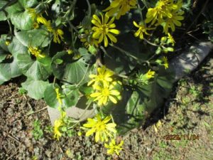 庭のつわぶきが今年も咲いてくれた。太陽を浴びて、つわぶきの黄色が、太陽に映えていた。花の少ない時期に咲いてくれるのでありがたい。