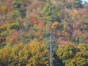 GG場を取り囲む、山々の紅葉が目を楽しませてくれたので、パチリ。名所の紅葉と違って、一人占めができるのが良い。スコアは4ゲームで87で最悪。