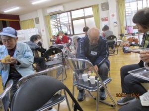 午前中は、公民館サロン。健康体操と、脳トレ体操が主で、11時から食事、雑談タイム。今日は稲荷寿司とおはぎ。と言っても、田舎つくりであるので、稲荷寿司だけで充分、おはぎは持ち帰りで、糖尿のため、いっぺんには食べられず、晩と明日の朝まで、分けて食べることになる。