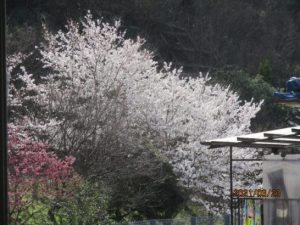 我が家の桜は満開になったが、家の中では見ることが出来ない。居間のソファーから見れるのが隣の桜。見事と言うほかはない。認知症の妻も綺麗なことは分かる様で、日には何回となく、綺麗ねと言って堪能しているようだ。