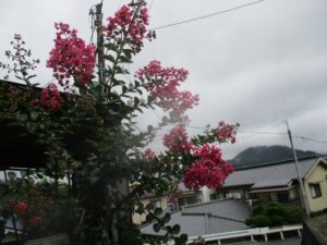 大雨警報とは裏腹に、雨は大したことはなかった。帰って見ると、入り口の、百日紅がきれいに咲いて