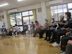 今日は、公民館体操。みんな、輪に立って、お手玉を、まわしていくゲームをやったが、家内の所で、お手玉が滞ってうまく進まない。これも愛嬌だと思っているが、他人様にはそうとは思えないらしい。しかし私が点いているので、笑って済ませているようだ。