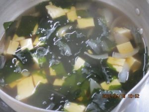 家内をデイサービスへ送り出して、男の料理教室。今日のメニューは、もち麦ご飯と、海苔巻きレンコンつくね。新玉葱のサラダ。豆腐とわかめのすまし汁。デザートは、牛乳寒天。つくねのレンコンは、微塵切りにしたが、すりおろした方が良かったようだ。