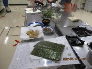 今日は料理教室の日。今日の献立は、折り畳みキンパ、トマトとブロッコリーのチーズ焼き、それに、ミルクスープと、ヨーグルトパフェだった。キンパは、初めて聞いた料理の名だったのは私だけで、我が家の、長女も次女も、作ったことはないけど、よく食べてい居ると言っていた。別の名を、朝鮮巻きずしと言い、もっと砕けて、「にぎらーず」というそうです。昼食に多かったので、持って帰って家内に食べさしたら、予想外に全部平らげてくれた。