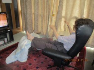 花火の前にテレビが、やっさ踊りの教室をしていた。ソファーに座って、手を動かしておどっていた。若い頃会社で踊ったことがあるので思い出したのかかもしれない。