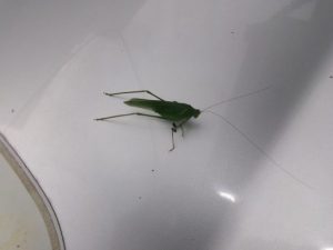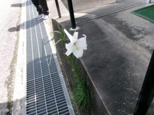 病院で気がついたら、コンクリートの割れ目から、鉄砲ユリはが咲いていた。わが家の玄関口には、野良ばえの朝顔が、これ見よがしに咲いていた。ボンネットの上には、珍客のキリギリスが鎮座していた。も秋は近いのかもしれない。そういえば、8月8日は立秋だったのだ。