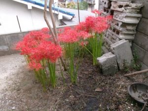 今年は1週間近く遅れて、庭の彼岸花が咲いた。いつまでも温度が高いので、遅れたのではないかと自分では思っている。