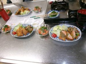 今日の献立は、秋鮭の紫蘇チーズ巻き・カボチャのきんぴら・トマトと胡瓜の酢の物・と飛鳥汁。これをみんなで作って、みんなで食べる。美味しかった。満腹になった。午後は、民謡教室。2/9は発表会。私は、西条酒造り唄に挑戦。今日は2/9のリハーサル。