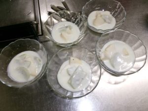 デザートは果物のヨーグルト和え。ヨーグルト(加糖)リンゴ、キウイフルーツ。あっさりと美味しかった。