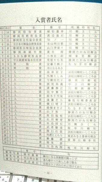 開催された第55回静岡県川柳大会の大会報が届きました。