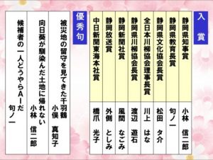 入賞句が披講時に文台に分かってるというのは、良い方法ですね、スムースでお二人の美女の笑顔も素敵!パワーポイント使用でスクリーンに即映像をだすことも魅力でした。