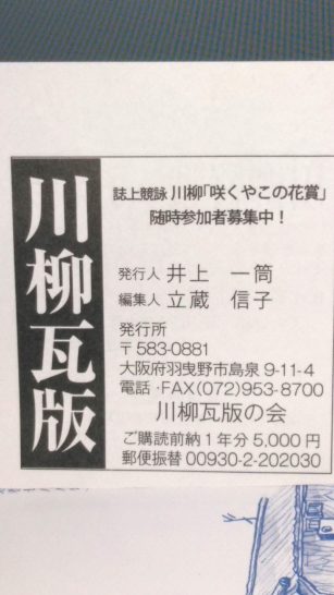 時代を吐き続ける「川柳瓦版」から刺激を受けています。