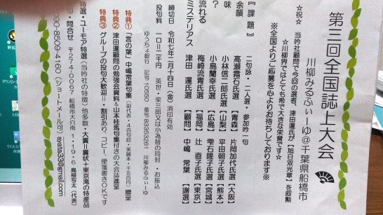 「川柳みるふぃーゆ」の第三回全国誌上大会の〆切は2月14日(消印有効)