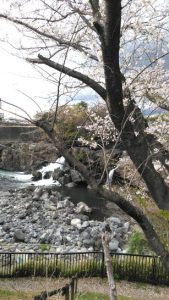 滝とさくら・・・なかなかいい絵面ですね~ 桜の木はありましたが、先の折には咲いていませんでした。 門池の孫たちと、狩野川公園と愛鷹とバイパスの桜を観てきました。