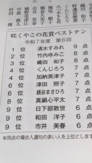 掲句は「咲くやこの花賞」入選句。今期6回目が終って4点。あと6回。ベストテン入りを目指しています。