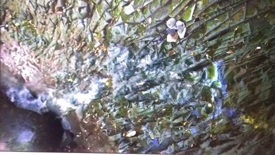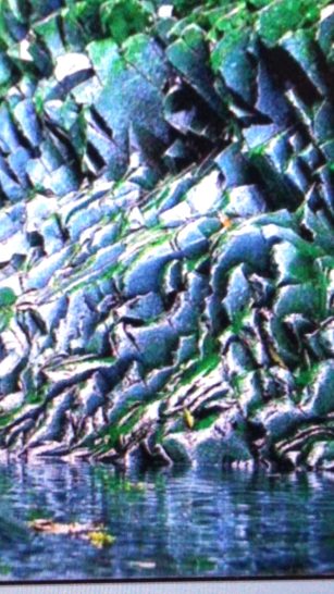 「龍の鱗」ともいわれる細かく割れた溶岩から水が噴き出している。