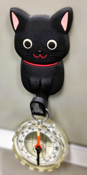 机に長年ぶらさがっている方位磁石。何に使うのかは自分も不明。