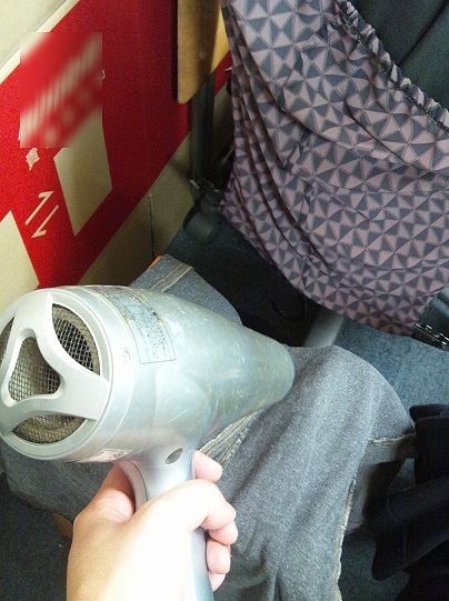 そんでもって、会社であわててズボンと上着を乾かす図。