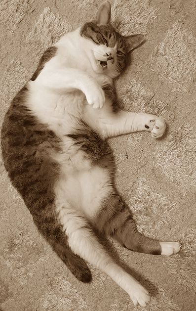 サイズが全くあわず、とりあえず頭からカボチャをかぶってみた先生。ジャック・オー・ニャンタン