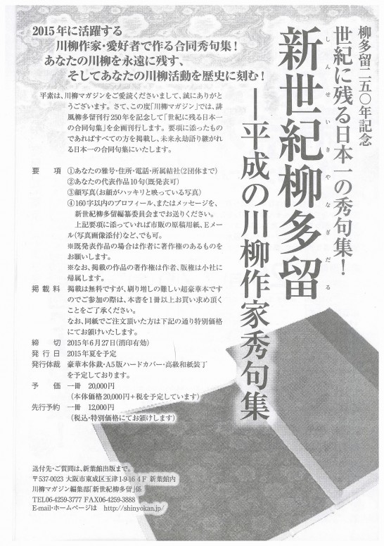 注目してください。先日このブログで予告した「新世紀柳多留」のご案内
