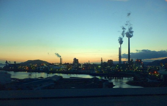 「工場萌え」という言葉があるように、以前から、工場そのものを鑑賞することを趣味とする方もいるようですね。このような大規模な工場内に入ったり働いた経験がないので、あくまで勝手な想像ですが、とくに夕暮れ時の工場を眺めていると、仕事着姿の頑張っているお父さんたちの背中が浮かんできて、何とも言えない哀愁といいますか、かえって「人間」の存在を強く意識します。浜田省吾とか、佐野元春の昔の歌詞に出てきそうなイメージでしょうか。