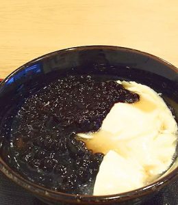黒い部分は、タピオカと黒もち米です。