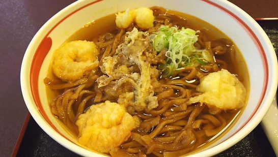 太い平麵の黒石やきそばに、蕎麦つゆやラーメンスープをかけていただきます![]()