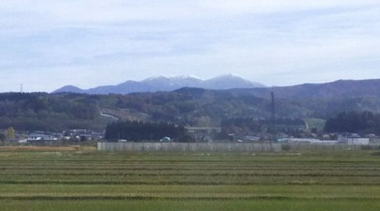 反対側の車窓からは、バックにそびえる八甲田連峰の姿が。