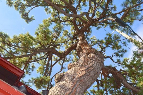 建物と共存してそびえる松の大木がカッコいいです。