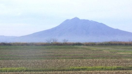 車窓から見えた、青森最高峰の岩木山(標高約1600メートル)