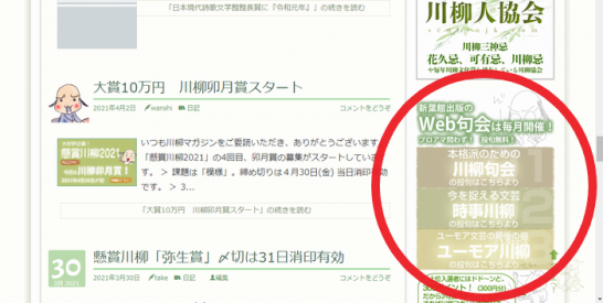 画像は、川柳マガジン編集部ブログです。ずっと下の方の右側に